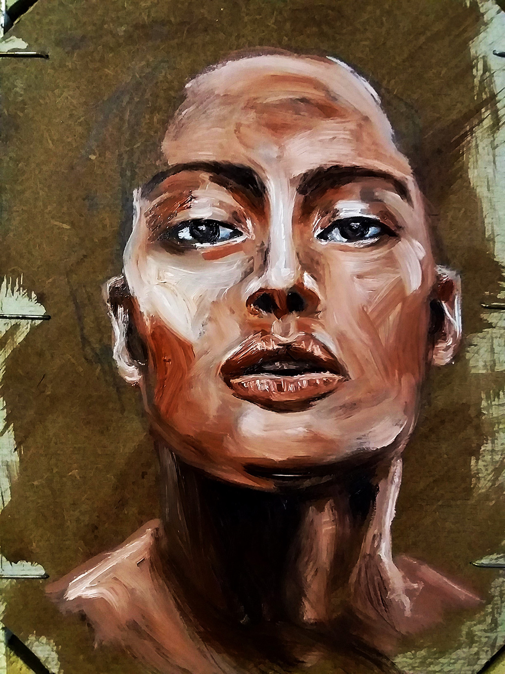 pittura a olio su cassetta di frutta